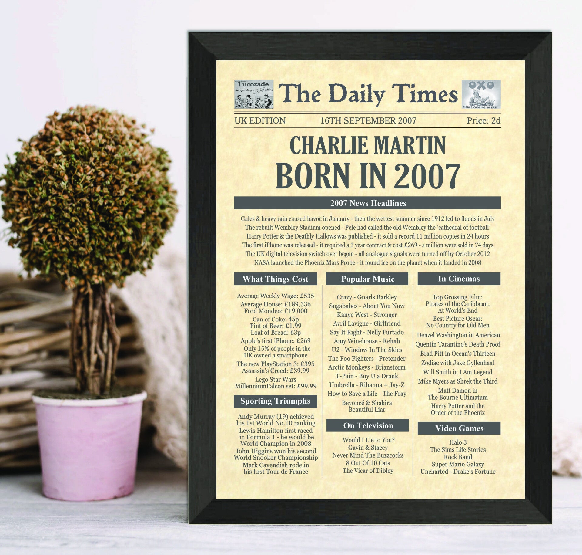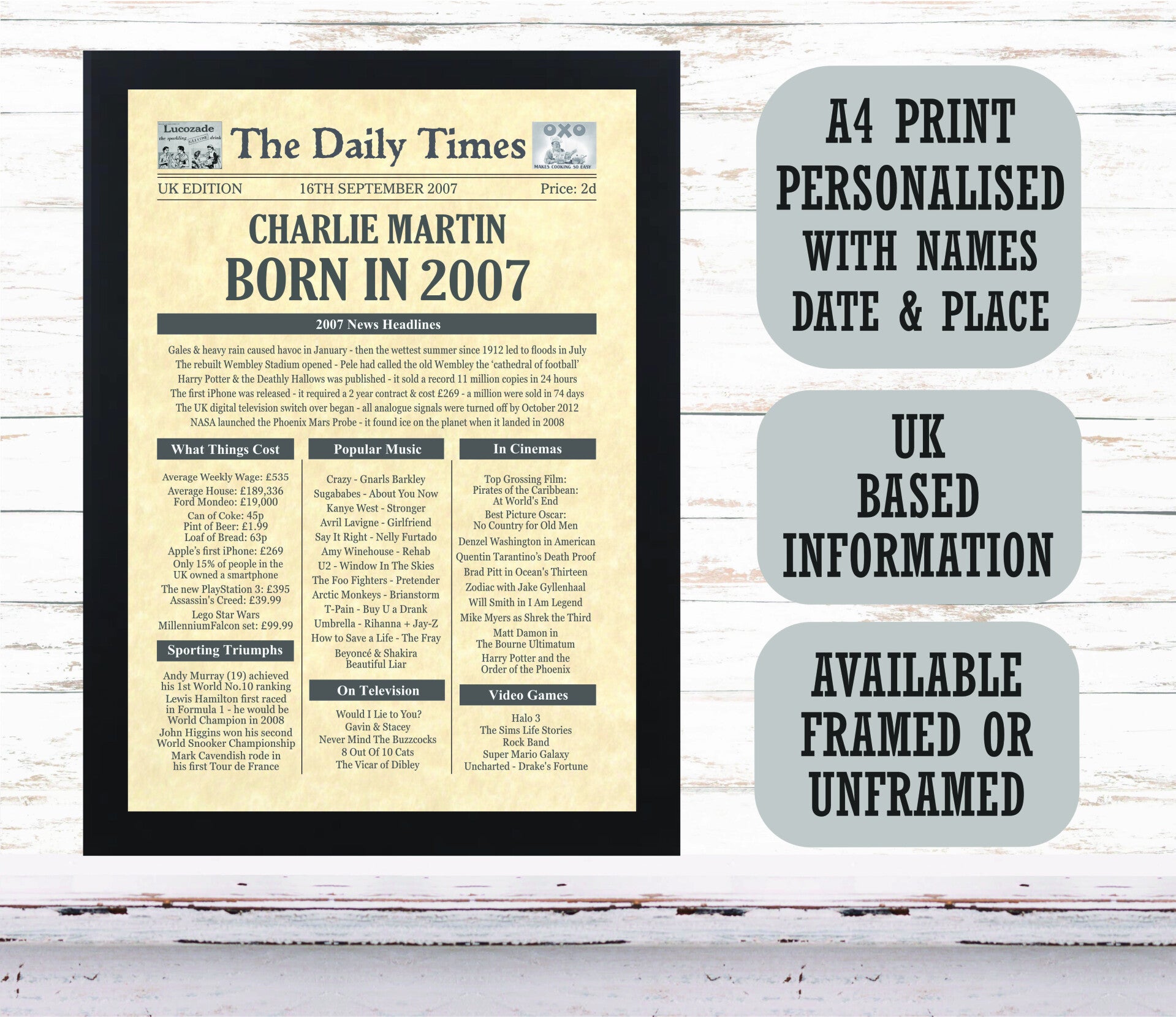 Give them a Nostalgic Journey through time with this Personalised 18th Birthday Gift - a 2007 Day You Were Born Print packed full of more than 50 facts & events from when they were born