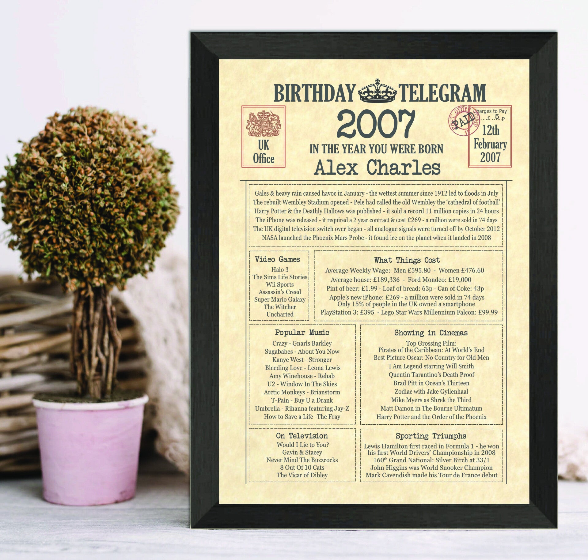 Give them a Nostalgic Journey through time with this Personalised 18th Birthday Gift - a 2007 Day You Were Born Print packed full of more than 50 facts & events from when they were born