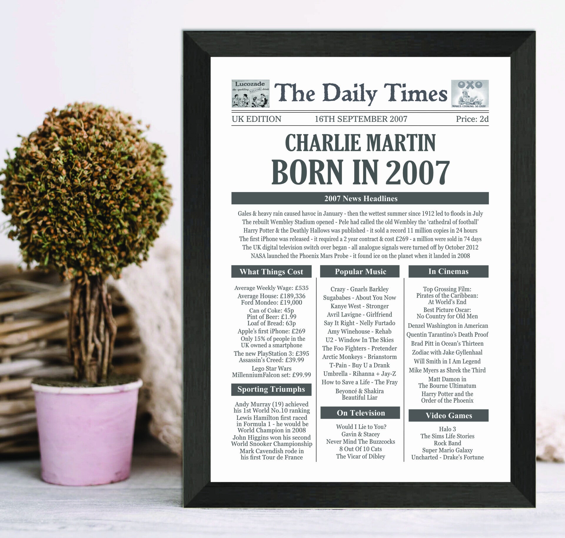 Give them a Nostalgic Journey through time with this Personalised 18th Birthday Gift - a 2007 Day You Were Born Print packed full of more than 50 facts & events from when they were born