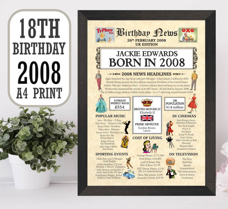 High Quality Personalised Prints - Available for ANY AGE - Just enter the birth date required & I will do the rest